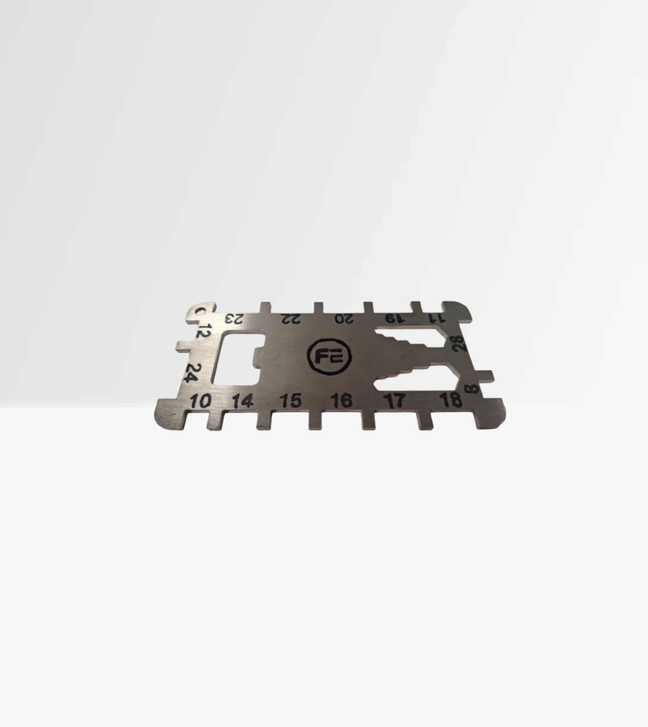This rectangle stainless steel bead gauge covers 15 sizes between 8mm and 28mm.